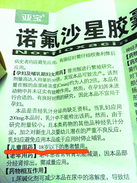 “我的孩子四五歲時經(jīng)常拉肚子,聽朋友說吃諾氟沙星管用,我就給孩子吃了這藥,前后共吃了十多粒。孩子現(xiàn)在身高明顯比同學(xué)矮許多。有什么補(bǔ)救措施嗎?做媽的后悔莫及。求懂醫(yī)的解答!”近日,一名叫“胡說的西紅柿”的網(wǎng)友在某論壇發(fā)帖求助。