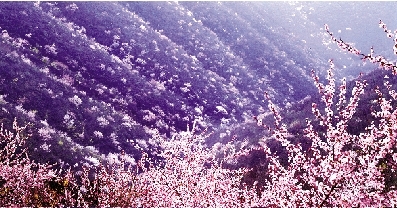 此時的靳家?guī)X,漫山遍野的桃花迎春怒放,燦若紅云,山腳下成片的梨花如白雪鋪撒大地。加上其他各種時令花卉,把整個靳家?guī)X打扮得春意盎然,姹紫嫣紅。