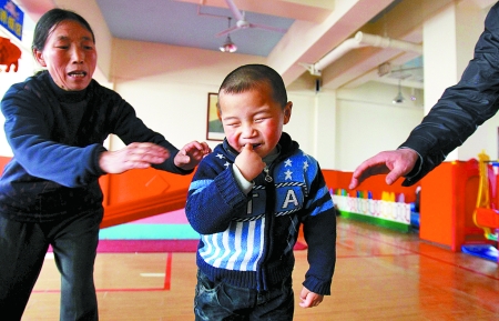 4歲的劉浩是個(gè)“小雨人”,媽媽在他生病后離家出走,奶奶沒有放棄。來鄭4個(gè)月的訓(xùn)練小有成果,對著奶奶,小家伙已能清晰地喊出“媽”。首席記者陳曉東攝