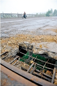王寨河橋位于S316省道鄭密路18公里700米處,大橋全長約54米,建于上世紀90年代初,是新密通往省會城市鄭州的必經(jīng)之路,是S316省道鄭密路的咽喉要道。記者在新密市公路局了解到,王寨河大橋于4月28日發(fā)現(xiàn)危情,目前,新密市公安局交警大隊和新密市公路局24小時派專人看守。禁止一切車輛通行。關于王寨河大橋何日修復,新密市公路局辦公室的劉主任稱,還要等專家勘察結(jié)果出來后才能定奪。