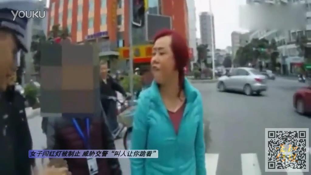 闖紅燈女子吼交警:叫人讓你跪著