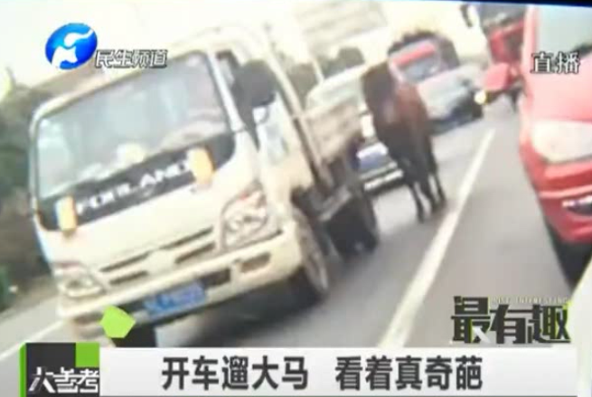 奇葩司機(jī)馬路上開(kāi)車(chē)遛馬