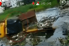 實(shí)拍挖掘機(jī)沼澤沉沒(méi)瞬間司機(jī)逃出