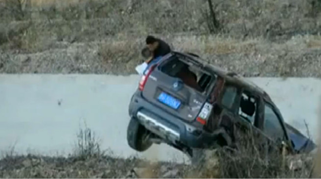 實(shí)拍:轎車剎不住飛落懸崖