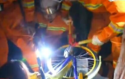 共享單車夾女孩 消防急救援