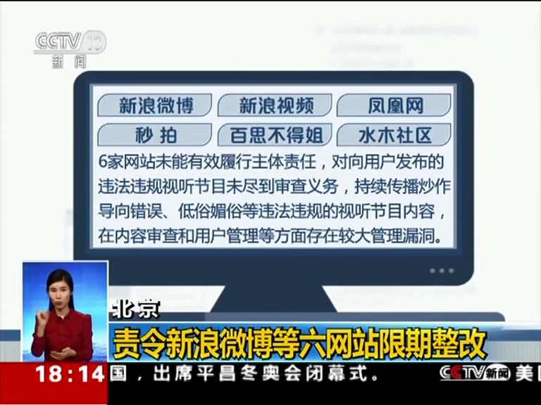 責令新浪微博等六網(wǎng)站限期整改