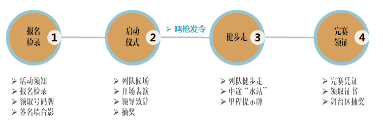 3、活動(dòng)路線沿途設(shè)置有補(bǔ)水站和醫(yī)療救護(hù)站,參與者可根據(jù)自身情況免費(fèi)取水和就醫(yī)。