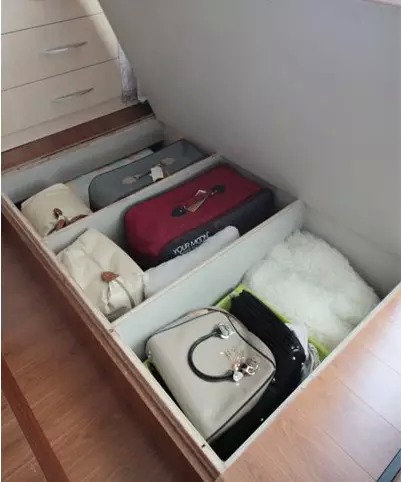 裝飾亮點(diǎn):地臺的空間作為儲物利用,可以為冬季外套、棉被、行李箱等比較占空間又較長時間不需取用的物品找到穩(wěn)妥的收納位置,且密封性較好。