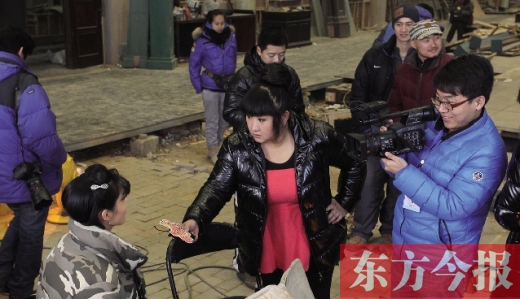 雖然“美食街”上人跡罕至,然而當(dāng)節(jié)目組來到《大河兒女》的攝影棚時(shí),卻發(fā)現(xiàn)這里人頭攢動。劇中的明星大腕、劇組工作人員、媒體記者將這里圍得水泄不通。而香香最關(guān)心的則是:來河南拍戲的明星們?nèi)绾慰创幽厦朗衬??為聽到他們的心聲,香香客串起了娛樂記者?/p>