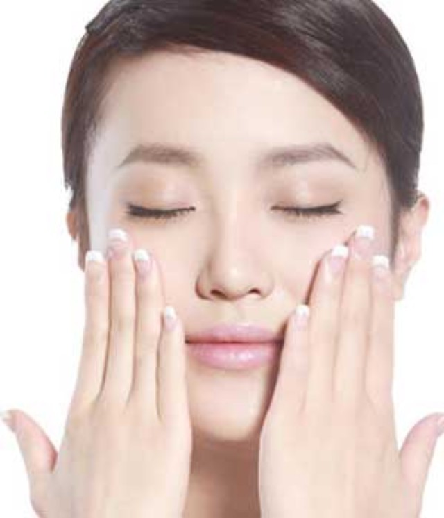 STEP 1:用雙手十指按壓顴骨的最高點(diǎn),然后嘴里念出字母“O”的音,這樣有利于鍛煉頰骨肌。然后再用相同的手指按壓法,按住顴骨的最高點(diǎn),嘴里念出字母“E”的音,這個(gè)時(shí)候能明顯感覺到臉部變得緊實(shí)了。堅(jiān)持以上的兩個(gè)動(dòng)作各30次。