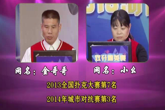 今天將要進(jìn)行的是2015河南省電視雙升精英賽,這也是繼2014城市對抗賽之后進(jìn)行的個(gè)人競技比賽,所有參賽選手,都是各地市參加城市對抗賽的優(yōu)秀牌手,今天進(jìn)行的是上半?yún)^(qū)第1輪的第場比賽,是由新鄉(xiāng)推選的“溪水”和“雙升找我”對陣來自濟(jì)源推選的“小幺”和“金哥哥”。今天雙方選手都是信心百倍,誓要拿系第一場,究竟結(jié)果如何呢?今晚21點(diǎn)40分《雙升英雄會》為您揭曉答案!
