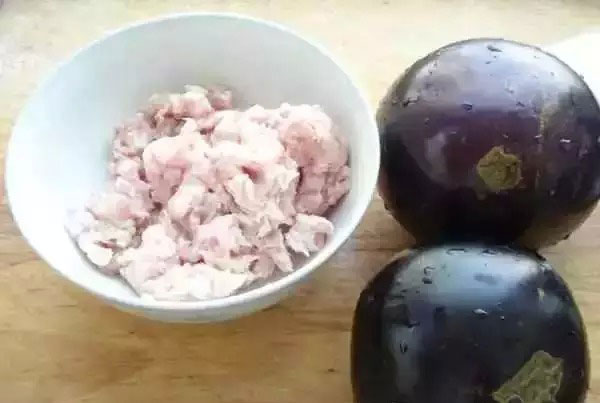 3. 茄子去皮切成連刀片,要切的薄一點,便于成熟,抹少許面粉。
