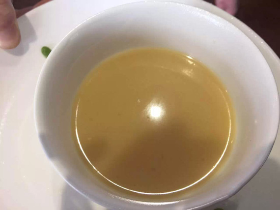 炸過的蛋液特別耐燉,而且越燉越香。李大師說了要想燉出來的湯濃稠色白,味道香濃,還要加一樣?xùn)|西。這個東西絕對好,學(xué)會怎么做之后,燉菜、下面條,都是無敵的調(diào)味料!至于這道菜的具體做法,您還得看李大師的現(xiàn)場操作。