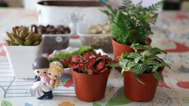 這些花瓶里的童話(huà)世界精致美麗,讓你仿佛置身于其中。制作微景觀,首先要鋪設(shè)隔水基底,鋪上種植土,再選取一個(gè)創(chuàng)意瓶作為容器,陶粒為底隔水透氣,撒上水苔緩沖,再鋪上厚厚的種植土,噴水打濕后種植層就完成了。