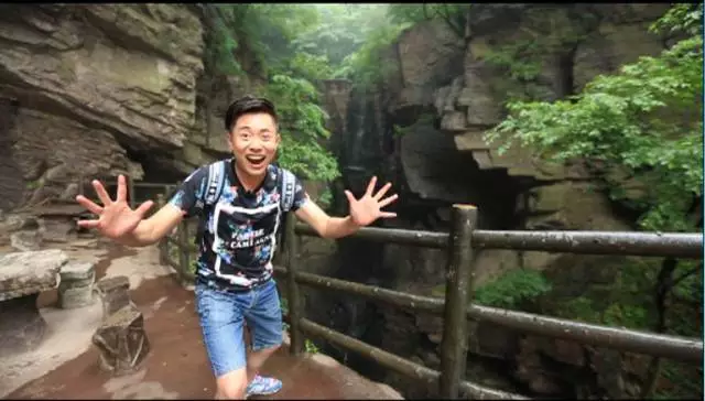 看到這棵樹了沒有,據(jù)說這個(gè)葉子有個(gè)奇特的味道,是一股橘子味,在這山上還有很多珍貴野生的樹種,漫山遍野一股清香襲來,再往前走就可以看到天井了,天井四面峭壁,犬牙交錯(cuò)高深莫測(cè)。