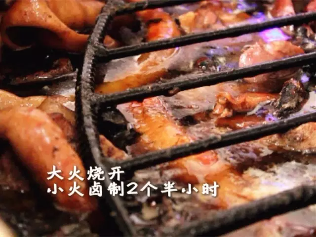 還有啥大料?這可是個(gè)秘密,據(jù)說(shuō)這秘方可是他家獨(dú)有的,俗話說(shuō)細(xì)節(jié)決定成敗,鹵料下鍋也要充分注意小細(xì)節(jié),肉皮朝下才能保證煮透并入味,上面還要蓋上鐵篦子和長(zhǎng)石條,保證肉類(lèi)能充分浸泡在老湯中。