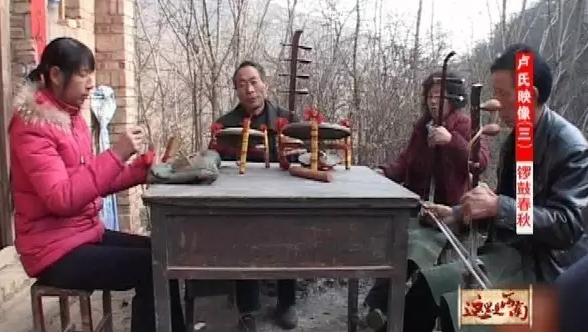 從前,時光緩慢而悠長。在鄉(xiāng)間,人們最主要的娛樂方式有兩種,一種是看戲,另一種是聽書??磻蛐枰欢ǖ臈l件和場面。所以看一次不容易。而聽書,三五個人一組,找個能遮風擋雨的地兒,弦子一拉、竹板一打就開始了。盧氏的鑼鼓書就是這樣。