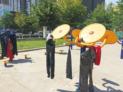 據(jù)小區(qū)物業(yè)部相關(guān)負責人表示,小區(qū)之前也存在這種情況,主要是部分保安和保潔人員住的地方比較潮濕,又沒有地方晾衣服,所以他們就晾在了健身器材上。該負責人說,物業(yè)曾提醒大家不要把衣服晾曬到器材上,但沒有多大效果,“總不能派人看守吧,這也不太現(xiàn)實。”同樣的事情也發(fā)生在管城區(qū)商都幸福家園,記者探訪時,一名女士拍打完晾曬在健身器材上的被褥,卷起來準備拿回家。